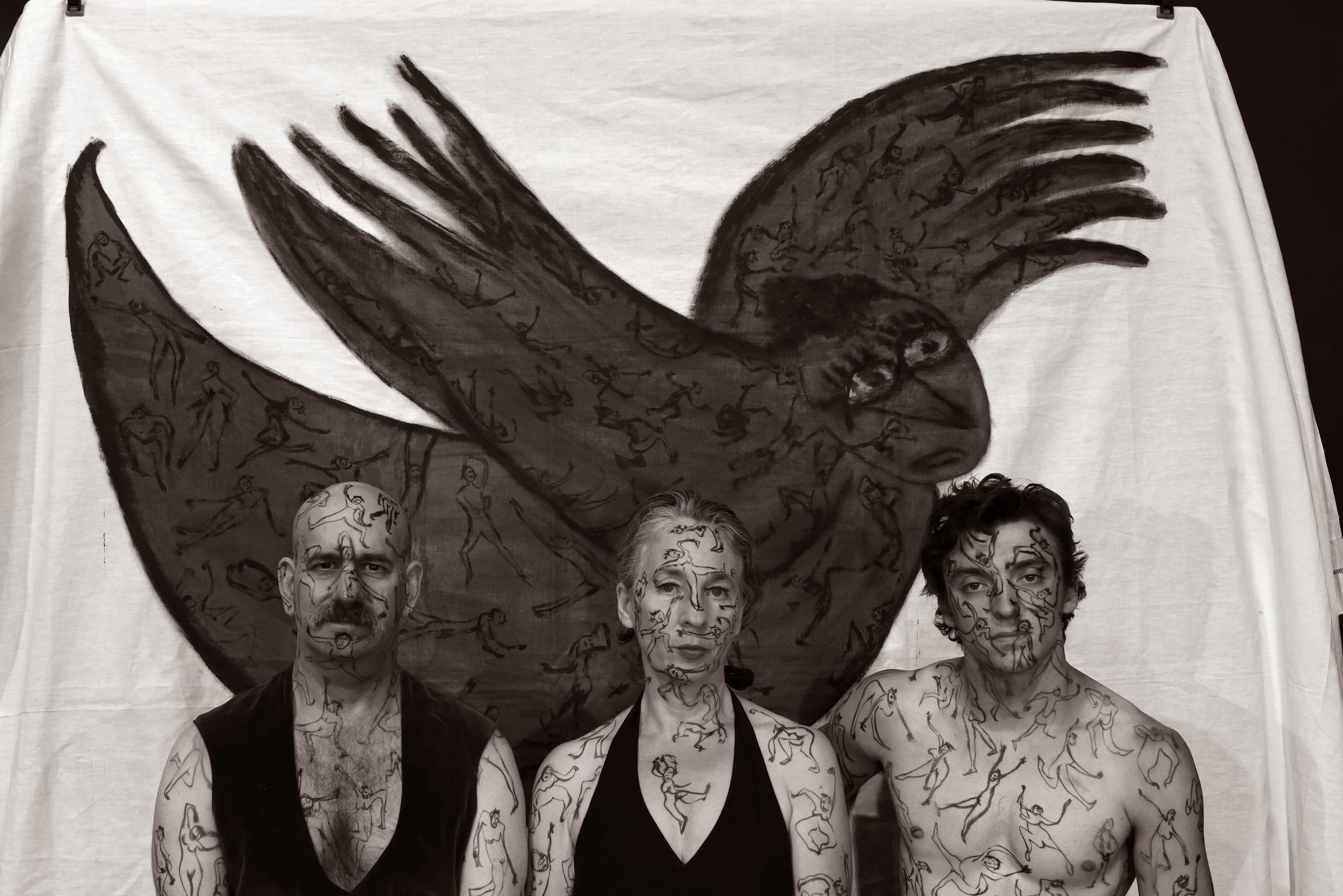On s’aventure du côté de l’intime étrangeté. On coudoie les ailleurs de l’humanité, celle qui frôle l’animalité, se joue des simulacres, se transforme sans se laisser attraper. On plonge notre regard en des prunelles énigmatiques, on scrute des physionomies aux traits changeants, on se laisse pénétrer par un chant viscéral. Ces créatures déroutantes nous viennent de contrées lointaines, peu explorées : les profondeurs de notre être.
