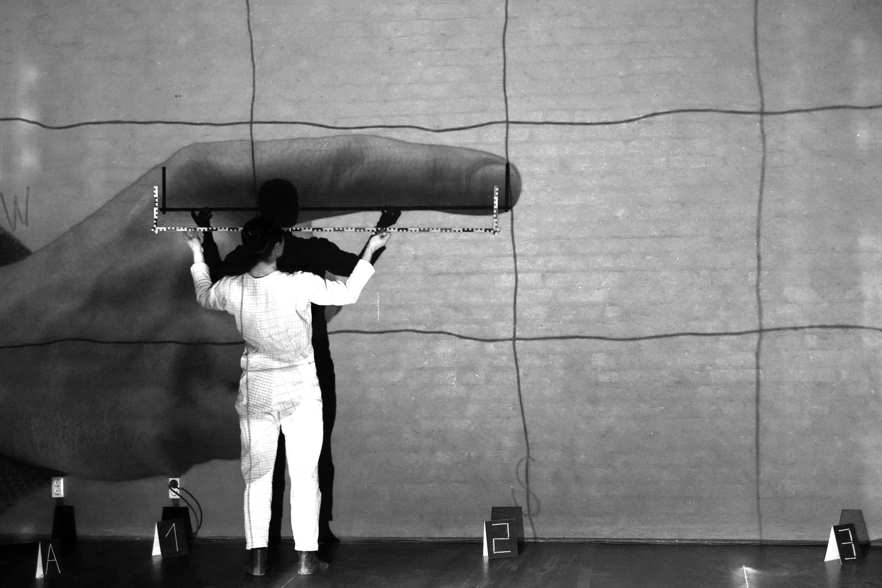 Afin de définir les limites spatiales et d’explorer certaines lois de physique fondamentale, les performeuses s’emparent aussi bien de leur propre corps que de nombreux outils de mesure.