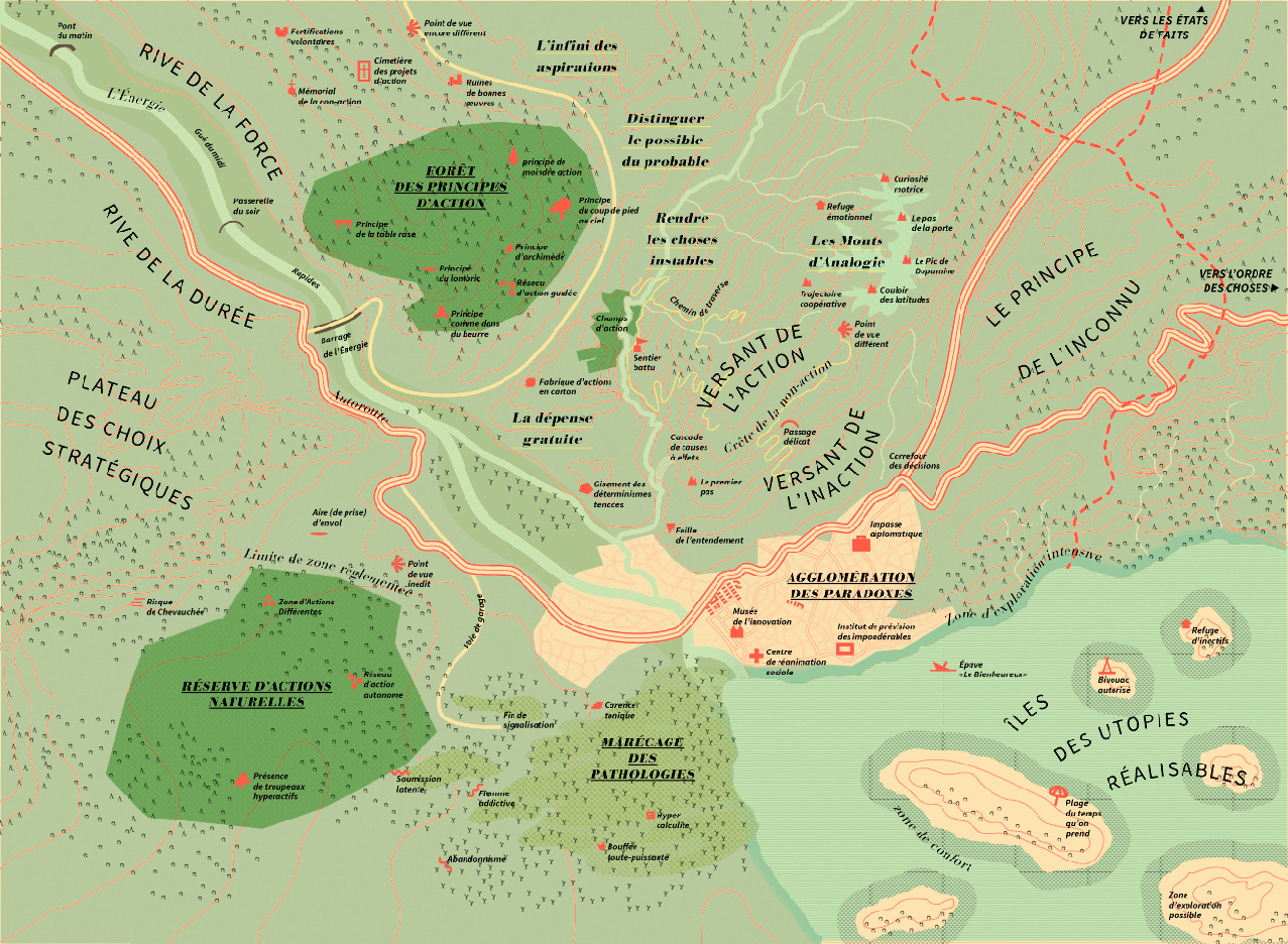 Avec le groupe n+1, nous avons décidé de nous y mettre : chercher à comprendre comment nous pourrions remettre la main sur l’action. Comment – à partir du réel – nous avons le pouvoir d’imaginer d’autres mondes possibles ? Comment les mettre en oeuvre ? Quels sont les mécanismes qui sous-tendent une action libre et autonome, capable de transformer les choses ? Quels sont, à l’inverse, ceux qui oeuvrent à son extinction ?