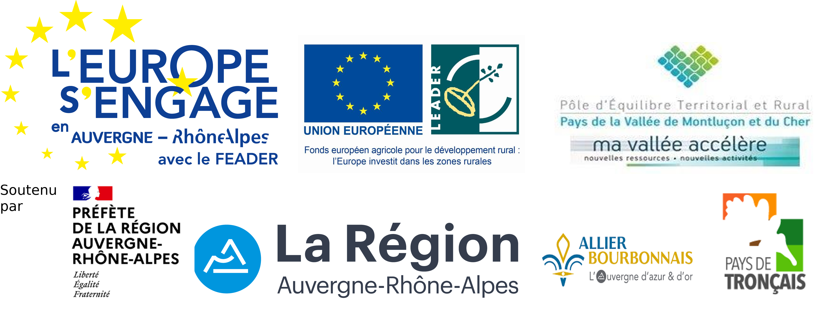Cette opération a été cofinancée par l'Union européenne, dans le cadre du Fonds Européen Agricole pour le Développement Rural FEADER : l’Europe investit dans les zones rurales, le Ministère de la Culture et de la Communication - DRAC Auvergne Rhône Alpes, la Région Auvergne Rhône Alpes, le Conseil départemental de l'Allier, la Communauté de Communes du Pays de Tronçais et l'association La belle meunière.